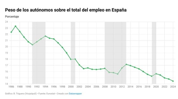 Como puedes apreciar en el gráfico siguiente, cada vez menos personas están por esa labor.