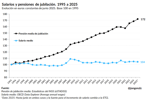 No, colega, esta situación tampoco va a cambiar mucho a corto plazo. “Las pensiones no se tocan” es un slogan político que suena muy bien, pero su implicación práctica en nuestra estructura de funcionamiento como país es la necesidad de esquilmar y endeudar cada vez más a las generaciones presentes y futuras. Digo “endeudar” porque es exactamente lo que esta dinámica implica en la práctica. Es técnicamente deuda del Estado y no del individuo, sí, pero al Estado no le quedará más remedio – muy probablemente – que sufragar su devolución vía una mayor carga impositiva a las generaciones futuras.